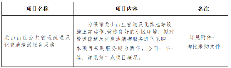 采购项目名称:龙山山庄公共管道疏通及化粪池清淤服务采购